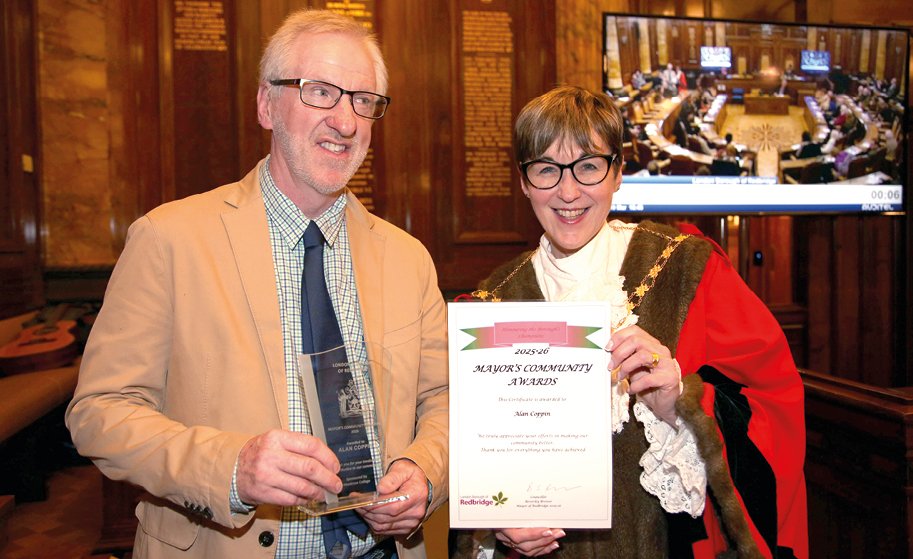 Alan Coppin, caretaker at Hermitage Court in Snaresbrook, was honoured at the Redbridge Mayor’s Community Awards last month.
